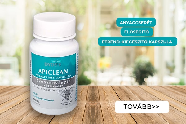 - Miből készül az APICLEAN? A kapszulák összetevői 100%-ban természetes, gyógynövényes anyagok: például sylimarin, articsóka-, borsmenta- és édeskömény-kivonat, papain és liofilizált méhpempő. A DYDEX technológiának köszönhetően nem tartalmaz mesterséges adalékanyagokat, színezéket vagy tartósítószert.